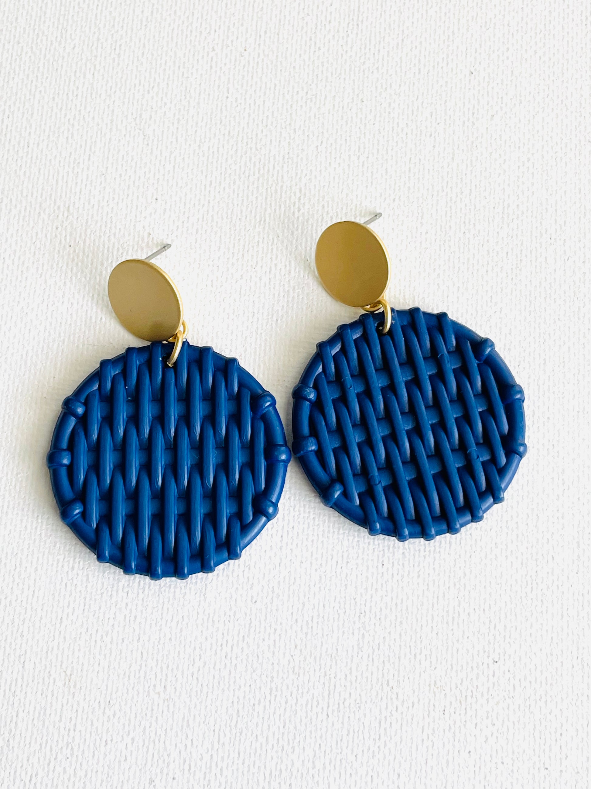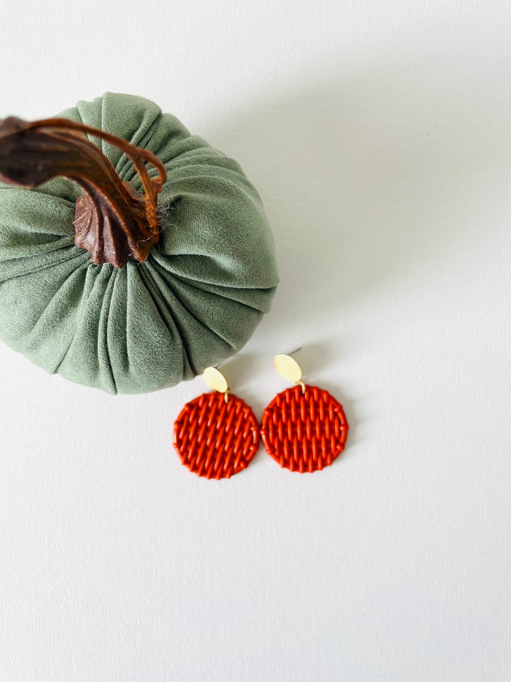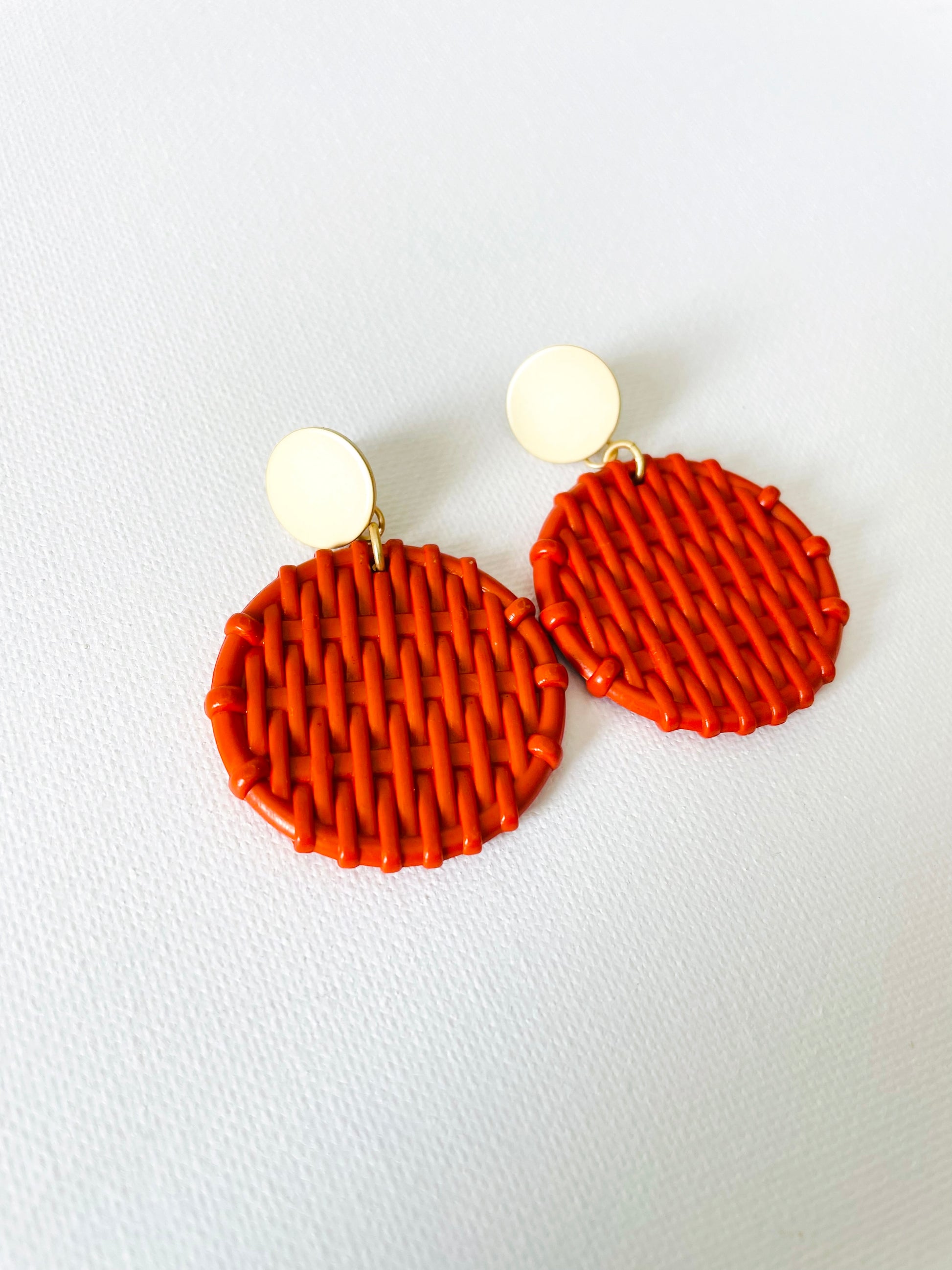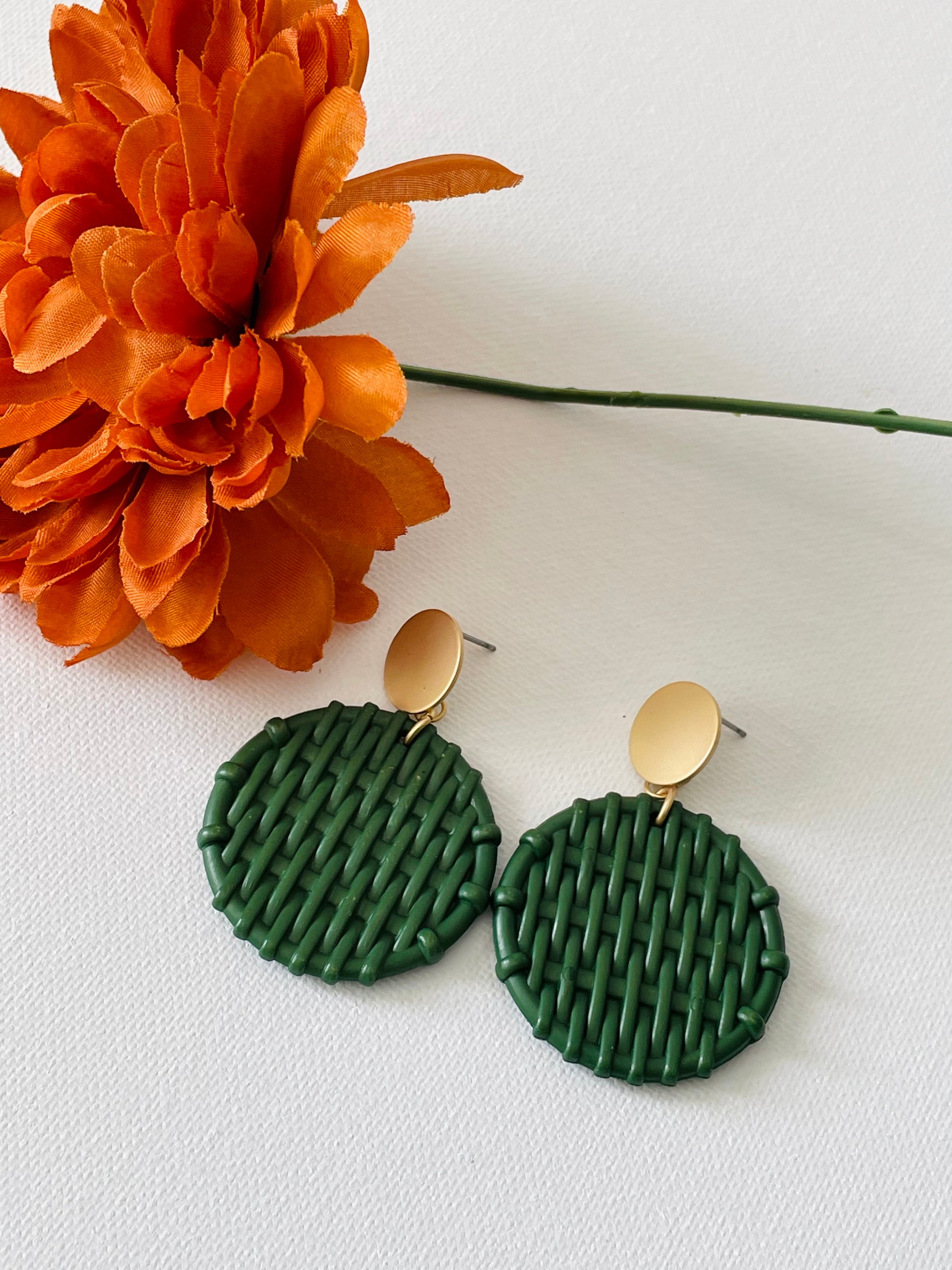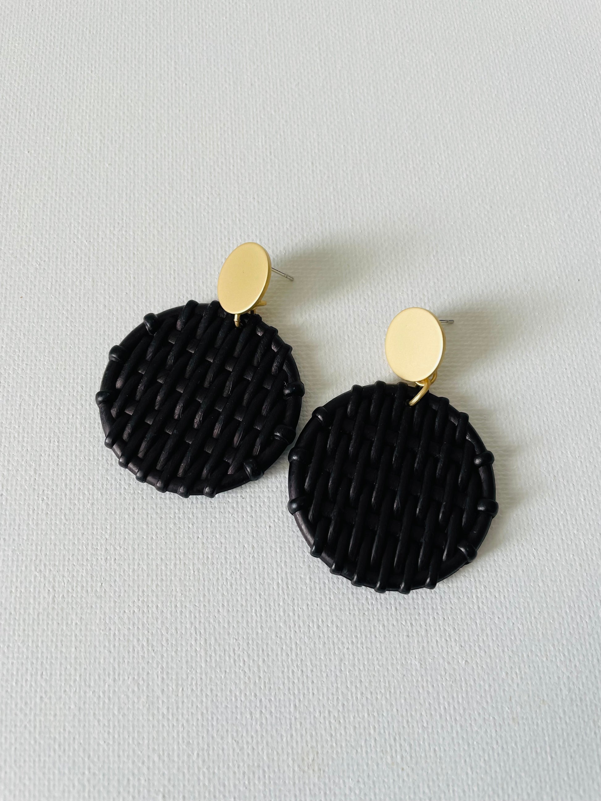 The raffia pattern adds a dash of exotic flair, making these earrings a statement piece that draws attention and sparks conversations. The lightweight design ensures you can wear them all day without discomfort. They’re secured with hypoallergenic hooks for sensitive ears.
