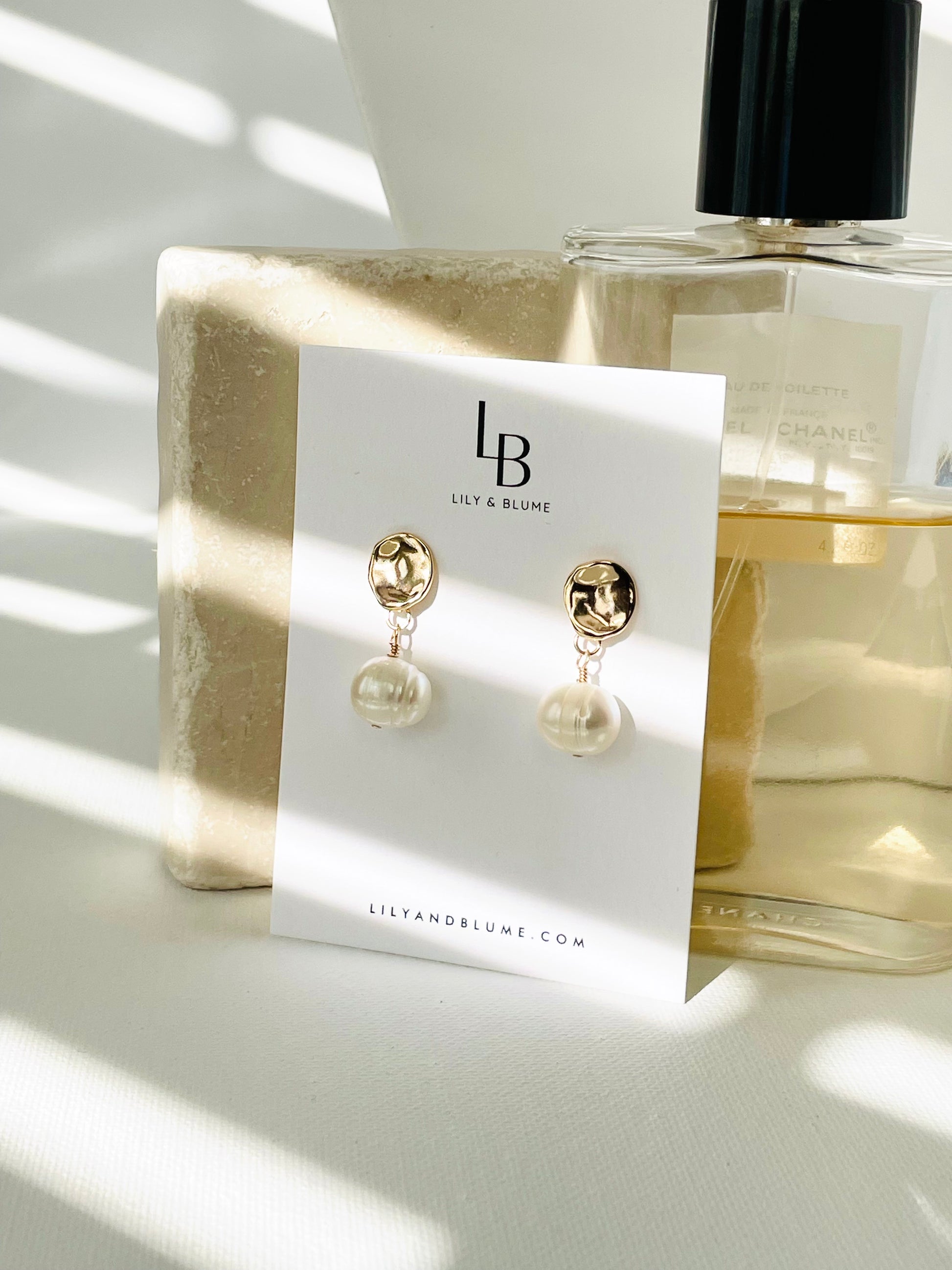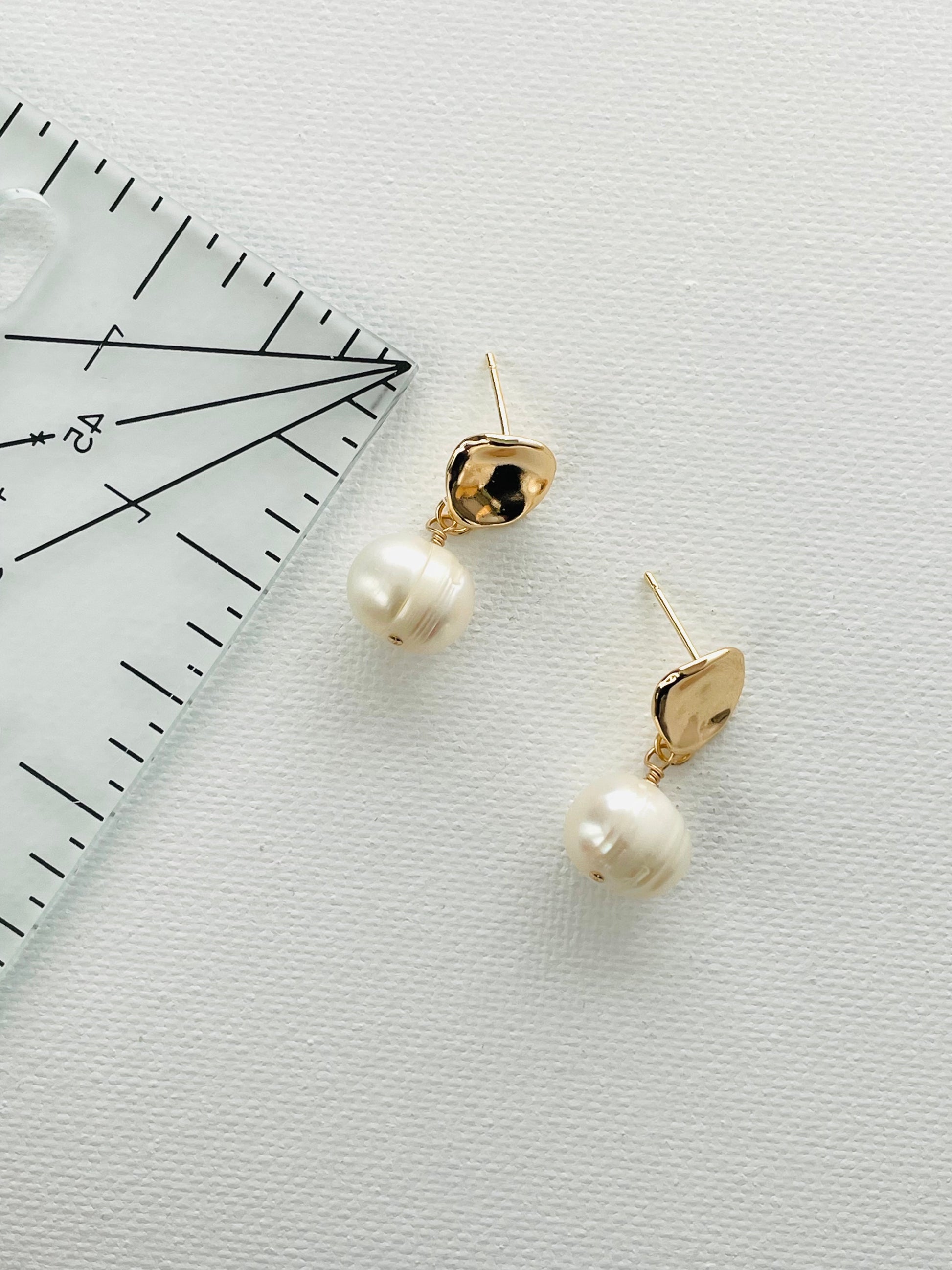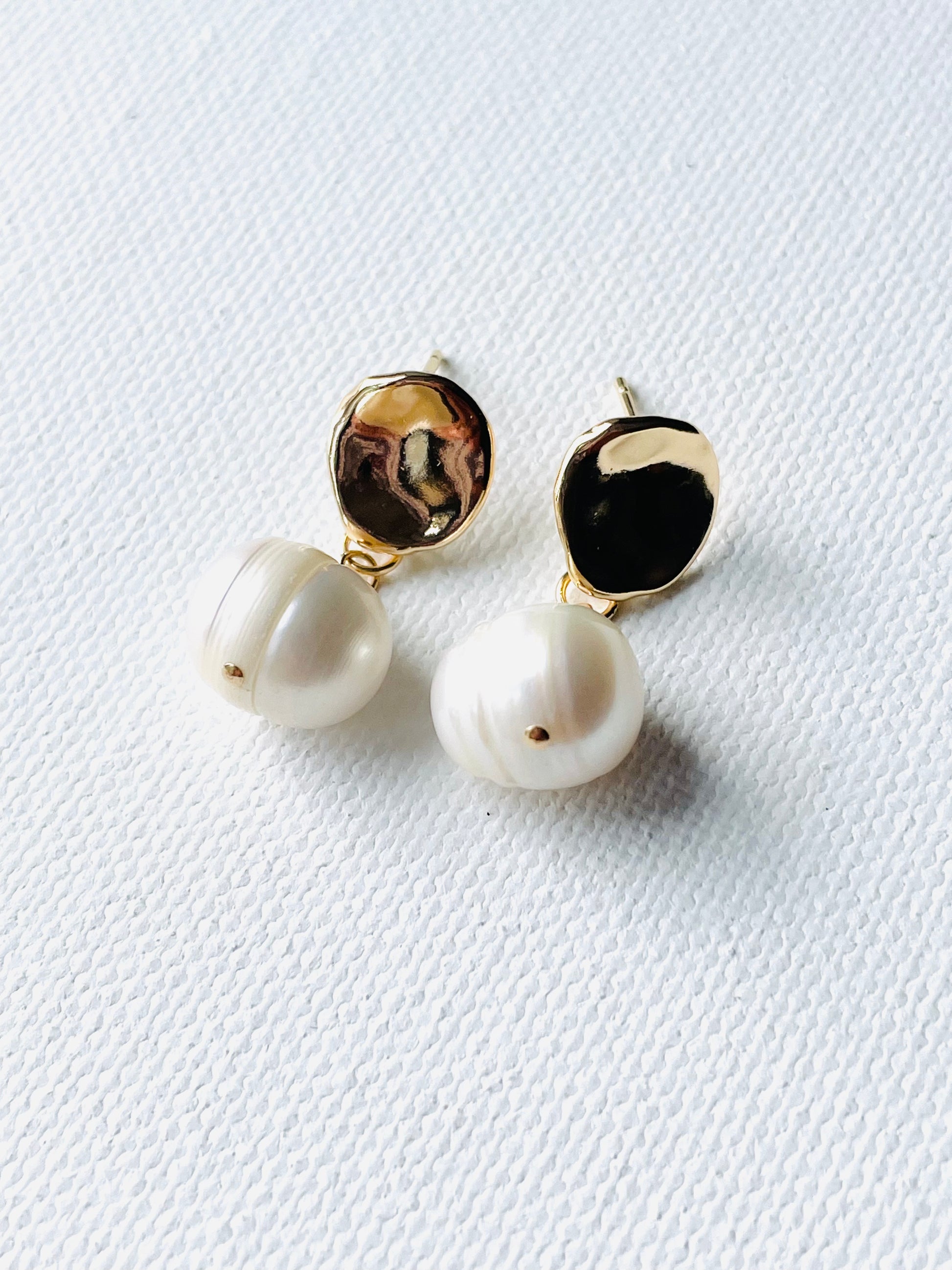 Lightweight and versatile, these earrings elevate everyday style or add a touch of grace to special occasions. Handcrafted with care, they celebrate the beauty of unique details—just like the woman who wears them. Elegant yet modern, these earrings feature a gold-plated irregular oval hammered post, beautifully paired with a luminous freshwater pearl. A perfect blend of texture and timeless charm, they add effortless sophistication to any look and pair well with the Camille necklace